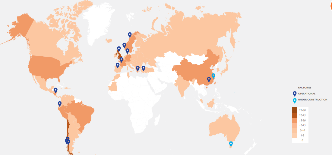 Biomar's operations are strategically divided to ensure we meet the unique needs of our customers worldwide. The Salmon Division supports salmonoid farming in Norway, Scotland, Chile, and Australia. In Europe, the Middle East, and Africa, our EMEA Division specialises in finfish, with production sites in Denmark, France, Spain, Greece, and Turkey. The LATAM Division leads shrimp feed production in Latin America, operating in Ecuador and Costa Rica. In Asia, we serve a wide variety of species with facilities in China and Vietnam.