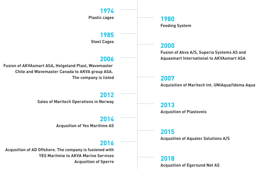 AKVA Group ASA (OSE: AKVA) was created in 2006 as a merger between AKVAsmart, Helgeland Plast and Wavemaster.