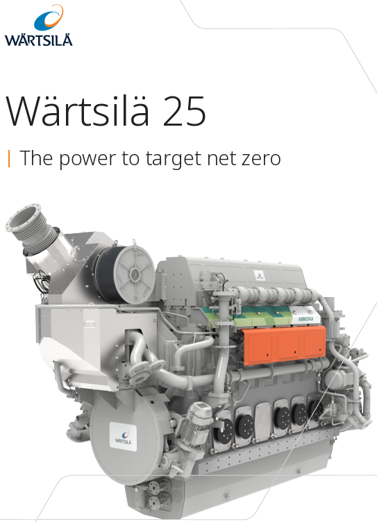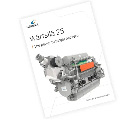The Wärtsilä 25 is a medium-speed 4-stroke marine engine with a future-proof, upgradeable modular structure that makes it easier than ever for you to target net-zero. Available in cylinder configurations from 6L to 9L and with a power output ranging from 1.7–3.4 MW, the Wärtsilä 25 provides reliable performance whether you are using it as a robust main propulsion engine or as a cost-efficient and flexible auxiliary engine. The engine is available in diesel and dual-fuel versions and now introducing ammonia.