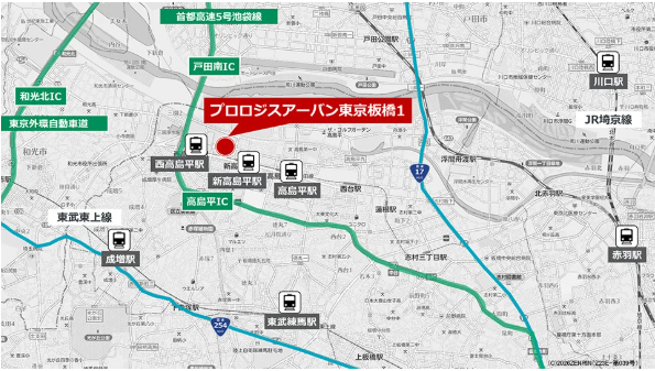 The newly acquired site is strategically positioned just 350 meters (approximately a 5-minute walk) from Shin-Takashimadaira Station on the Toei Mita Line, offering strong accessibility for workers and efficient distribution routes. Its proximity—around 1.4 km—to the Takashimadaira Interchange on the Metropolitan Expressway Route 5 Ikebukuro Line further enhances its appeal as a logistics hub.