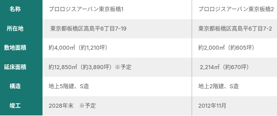 開発地に隣接する**「Prologis Urban Tokyo Itabashi 2」は、かつて食品卸売業者により使用されていた2階建ての冷蔵倉庫**であり、現在はプロロジスによって運営されている。これにより、同社の温度管理型物流分野での存在感も強化されている。
